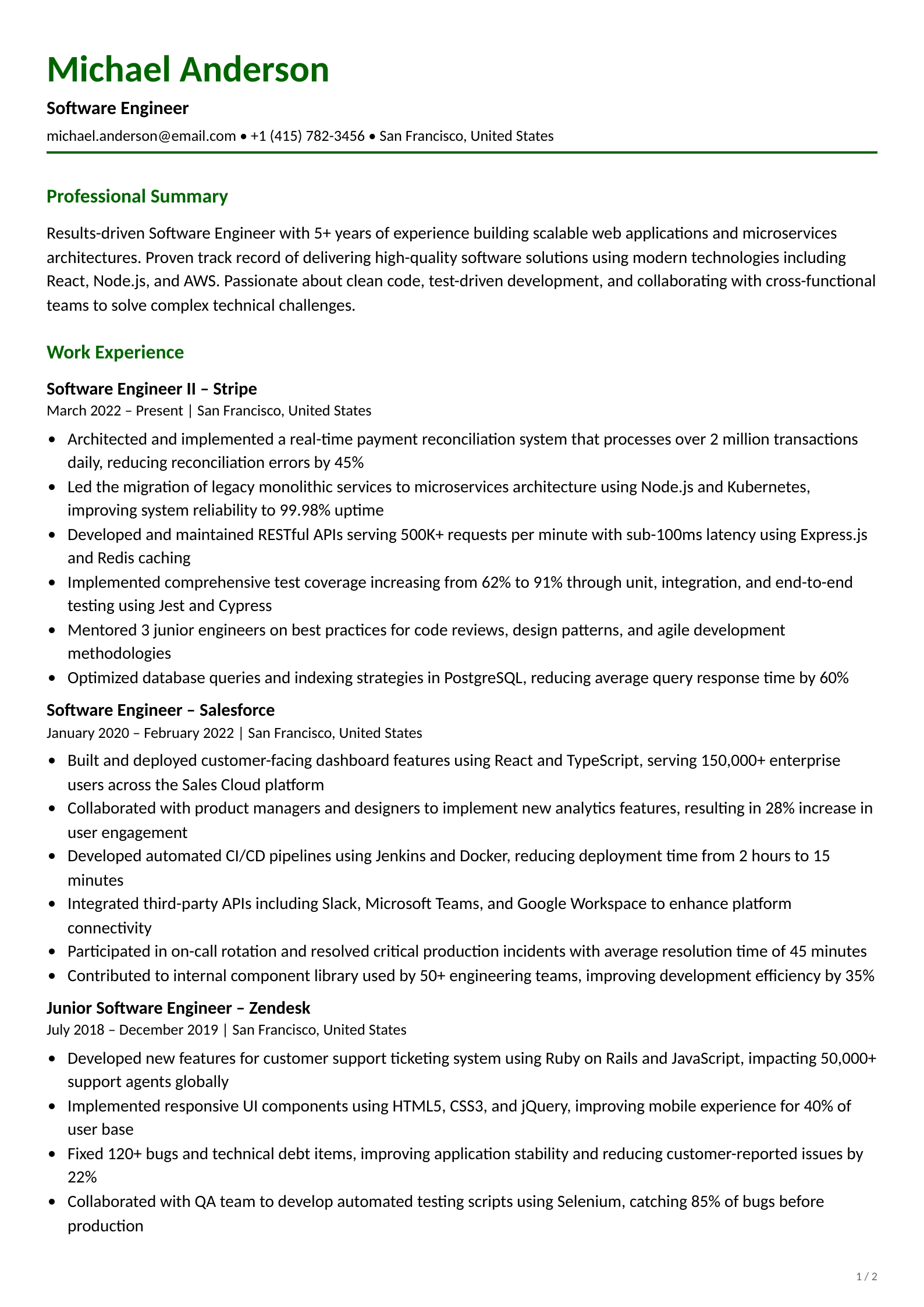 Professional mid-level Software Engineer resume template for the Technology industry. Download this ATS-optimized resume example to land your dream job.